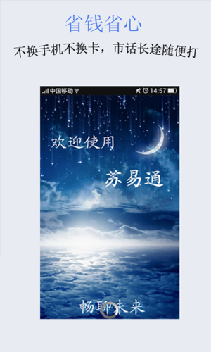 苏易通通讯app是一款非常给力的打电话的手机软件!现在这款苏易通通讯app软件不仅仅能够给你打免费的电话,还能够省钱哦!而且苏易通通讯app的通话体验非常清晰!赶快来看看苏易通通讯app吧!使用苏易通通讯app零月租,无漫游,想省话费,苏易通通讯app是您必备的网络电话软件。
