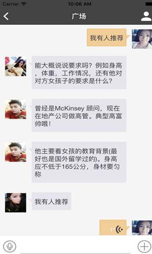 牵陌app软件特色: 1.牵陌app也为红娘专门提供了一个沟通平台。 2.在牵陌app中,通过红娘之间沟通,交换手里的单身男女资源,实现共同牵线。 3.牵陌app致力于为用户打造一款最好玩最有趣的社交网络类即时聊天软件,非常的好玩的体验哦。