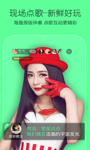 酷狗繁星伴奏:海量的原版伴奏,最强大的搜索,最优质的K歌体验。配合虚拟视频美化,让用户在摄像头前绽放你的动态美。此外,繁星直播间修改版还能进行视频录制、拍照截屏、屏幕捕捉等,录歌练歌,随心所欲,轻松打造个人MV。