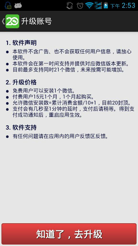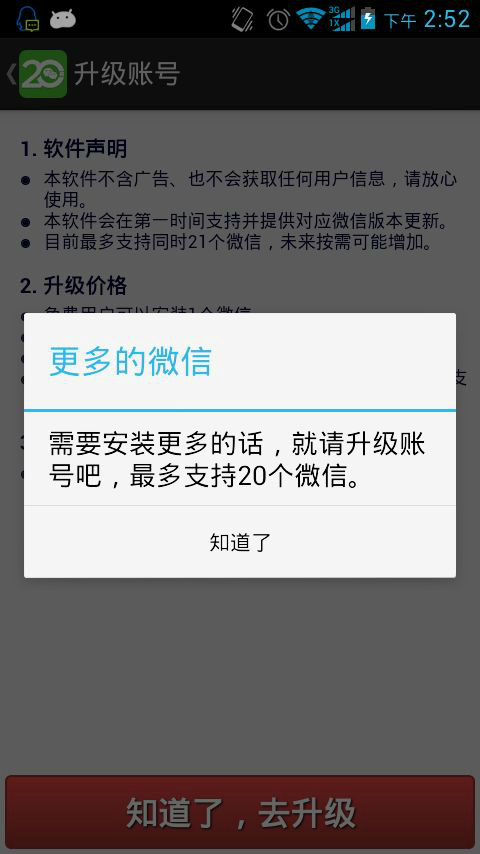 微信多开宝是一款可以登录多个微信账号的微信社交软件,随着微信越来越普及,因其方便、快捷深受我们的喜欢,所有有的用户不只有一个微信账号,对于有多个账号的用户,使用微信登录需要频繁的切换账号,非常的不方便,微信多开宝就有效的解决了这一问题,微信多开宝,让你一个手机就可以同时登录多个微信账号,微信多开宝绝对的绿色无广告,并随着微信的更新而更新,是现在最好的微信多账号多开软件,是我们多账号登录的必备神器。
