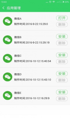 微信多开大师是一款功能强大的微信多开辅助软件,现在使用微信的用户是越来越多,许多的用户还不止有一个微信账号,那么怎样来有效的管理这些账号呢?是许多用户比较头痛的问题,而微信多开大师软件中主要采用了强劲的虚拟引擎,能够一键制作多个微信分身,满足用户一次性的同时登录多个账号,并且微信多开大师中的微信分身具有微信的相关功能,在使用的过程中用户不会读取用户数据,保护用户的隐私,安全性能高,同时软件还绿色无广告,体较小,不影响其他软件的运行。
