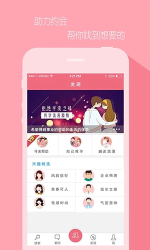 5)最有效的交友平台:高级搜索覆盖经济情况、情感状态、兴趣爱好等维度,确保找到合适的人;约会、两性信息,帮助你了解异性,确保交往成功率。