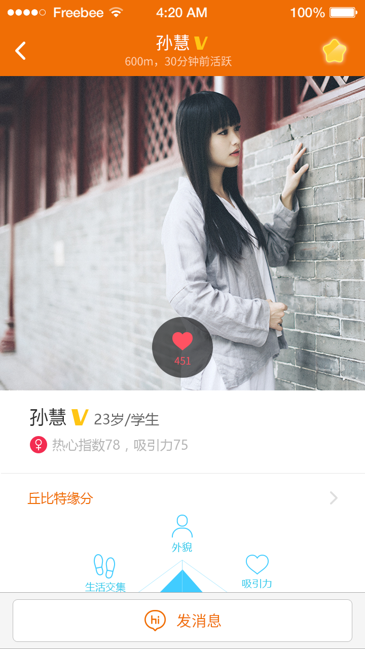 基于大数据技术和社会心理学研究成果,从外表、兴趣爱好、生活交集、个人能力、吸引力等多维度高效准确匹配缘分。
