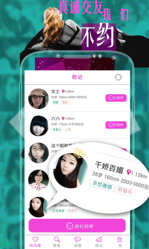 6、桃花缘,让爱陪在您身边,同城找对象约会谈恋爱一步到位,只为您的到来。