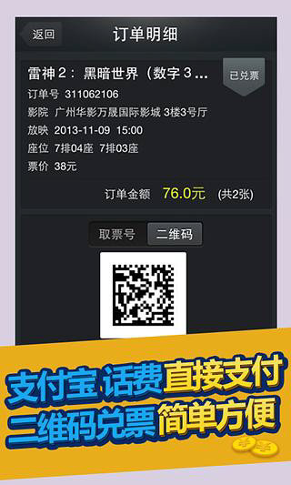 一款有诚意的电影票在线订座应用。120座城市、800家电影院影讯查询、选座订票。每周都有低至3折的特惠活动,优惠太多,不便细说,请亲身体验。 院线通电影票主要功能 1.800多家星级影院,总有一家在您身边; 2.提前选座订票,远离排队的烦恼; 3.丰富影讯想看就看,电影排行榜,高清剧照及预告片,每天数千条放映场次信息,让您掌握大片,热片的动态。 院线通电影票5.3.2版本更新内容 1.增加抵用券使用说明; 2.完善影评功能; 3.适配万达新系统; 4.修复一些BUG。