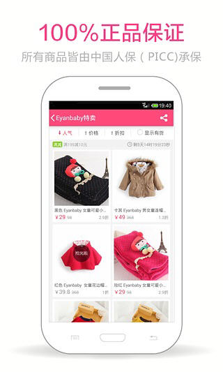 贝贝网以品牌正品、独家折扣、限时抢购为特色,致力于整合国内外最优质的孕婴童品牌供应商,打造妈妈宝贝专属的一站式购物平台。贝贝网与国内外上千家孕婴童品牌供应商保持长期战略合作,提供童装、童鞋、儿童玩具、用品等各类优质商品,每天数十个特卖专场,以1-7折超低折扣限时限量出售,十点准时开抢,抢完即止。 贝贝特卖2.3.3版本更新内容 1.修复无法找回密码问题; 2.优化分享体验; 3.修复偶发闪退,提高稳定性。