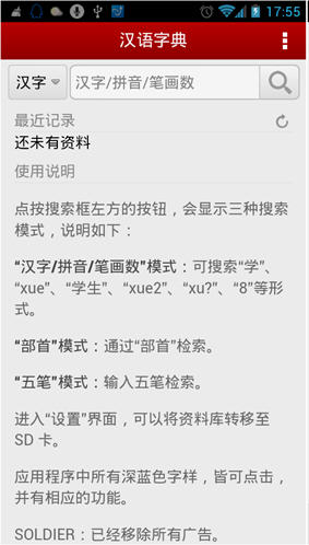 汉语字典是安卓平台上最好用的一款手机应用字典,海量的汉字可供查询,比书本新华字典更好用,方便快捷,而且随时随地都可以查!