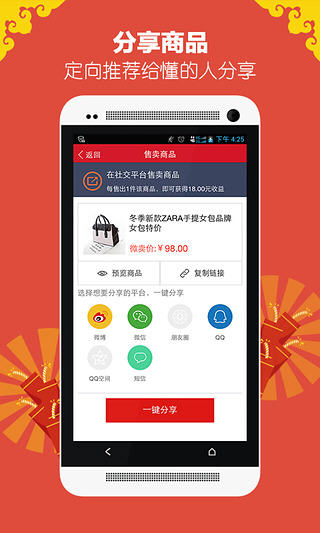 微卖是一款基于安卓平台的开店经商软件。提供给用户0费用开店、货品资源管理及代理等多项服务,帮你解决无资金以及无货源的苦恼问题。加入微卖,赚取你人生中的第一桶金! 微卖软件特色 1.零费用开店,厂家直接提供货源; 2.定期优惠活动,第一时间获知; 3.多种支付方式,轻松网购; 4.订单追踪查询,随时了解订单动态; 微卖3.0.3版本更新内容 1.【优化】各版本兼容性问题; 2.【优化】界面显示; 3.【修复】部分手机闪退现象。