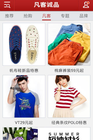 凡客诚品手机客户端精心推荐众多流行商品,是您不容错过的购物平台。超值的团购活动,优质的品牌商品提供,让您轻松购买到最好的商品。感受手机购物的乐趣,尊享价廉物美的商品,就来凡客诚品。