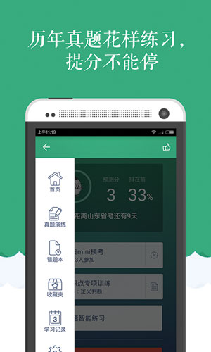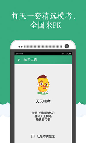 天天模考腰果公务员介绍 1.提供历年公务员考试大纲,标明重点 2.分享近十年公务员真题以及模拟题 3.支持每日一模考功能,训练应试能力