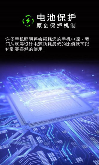 强光手电筒软件特色: 光照范围提普通软件提升24%; 电池消耗比普通软件降低38%; 独有技术保护手机电池; 紧急情况SOS闪光灯;