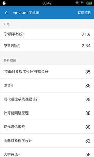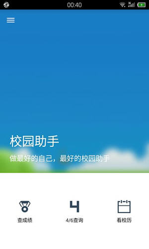 校园助手功能特色: 1.支持成绩查询; 2.支持四六级查询; 3.支持校历查询。