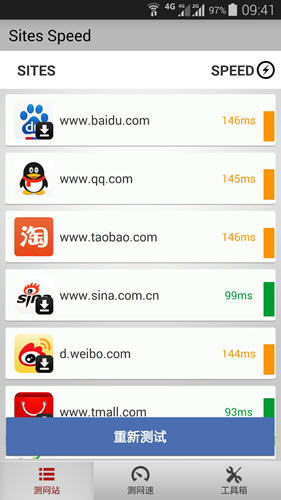 《网速测试大师》是一款非常专业的网速测试软件,除了提供精准的网速测试功能以外,还提供网站测速功能。全面支持测试WiFi、2G、3G、4G网络,全球超过200个本地化的测速节点,保证测速结果非常精准。