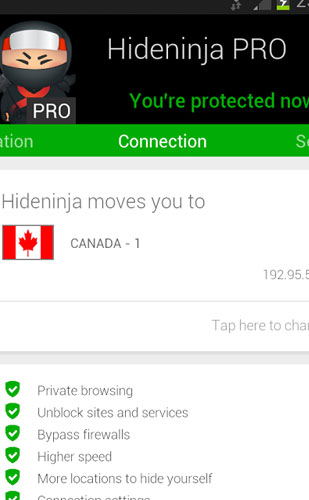 和谐忍者软件特点: 1、更多的VPN服务器在不同的国家(美国、英国、荷兰、德国、法国等) 2、、符当无线网络设置 3、符在3g/LTE/GSM设置 4、符在Android启动时设置 5、100%疏通Facebook,Skype,YouTube,Twitter,Flickr,Netflix,Hulu,潘多拉,VoIP和其他服务