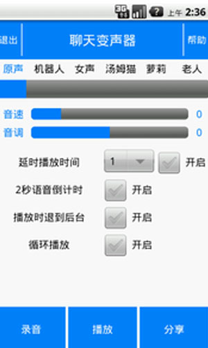 聊天变声器是一款能轻松实现各种音效转换的手机应用,除系统预设的各种音效外,你还可以自定义的切换各种声音效果,并且转换后的声音文件可以通过微信qq邮件的方式分享给好友。如此有意思的一款手机软件,你值得一试!
