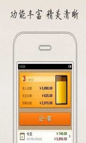 金蝶随手记的特点: 1.随手记账,日常开支一看就知道,非常的实用。 2.可以免费云备份,强大云同步。 3.还能摄像头扫描记账,语音云记账。