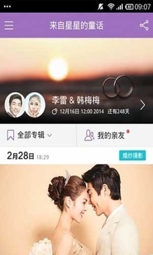 婚礼相册是专为婚礼而打造的专属私人相册,,可以永远的为新人记录下爱情的历程以及筹办婚礼的经历,温馨满满,还可轻松分享婚礼的照片和婚礼故事。