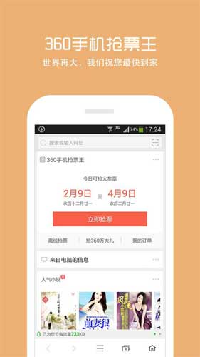 360浏览器免流量版是一个功能齐全,使用便捷的手机浏览器,软件安装包超小,去广告,超省流量更省钱,还能够享受闪电般打开网页的快感,还没有下载的朋友抓紧时间哦!