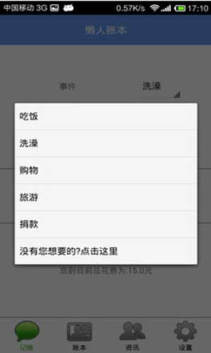 懒人账本的特点: 1、可以随时随地记录并且查看账本,了解花费状况。 2、轻松记录,免去繁琐的步骤。 3、可以把自己的账本内容进行分享。