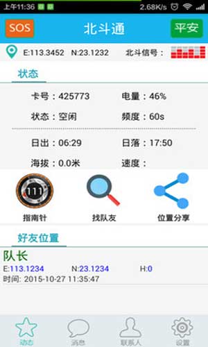 北斗通的特点: 1、能够实时以经纬度对自己以及好友进行定位。 2、能够使用指南针功能以及查看自己的足迹,对队友分享位置。 3、能够对家里报平安,遇到危险时可以一键报警。