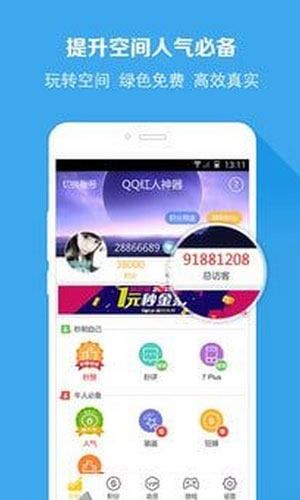 qq红人神器最新修改版应用特色: 1.秒赞/秒评自己:一键秒赞自己、好友、明星,24小时完美流畅运行,0等待,0失败! 2.采用国内首创先进技术,功能稳定,操作高效,日刷千万人气! 3.秒刷人气:日进十万、百万、千万访客,明星神马的弱爆了! 4.全球自定义地理位置和定时说说发布,无人望其项背! 5.最强装逼截图模板,随时随地任意炫出个性! 6.全部真实数据,刷取速度快的超乎想象!