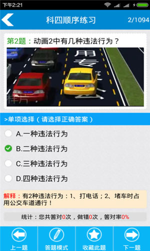 驾校考试科目四app应用特色: 1.顺序练习:多练多学,对比题目的差异,加强对交规的理解。 2.随机练习:随机打乱题目顺序,平衡题目练习的几率。 3.章节练习:题目按章节归类,强化每个章节题目练习。 4.错题练习:自动收录错题,加强对易错题、常考题的练习。 5.收藏练习:收藏易错,易忘题目,强化记忆练习。 6.模拟考试:全真模拟考试,包含新施行的新交规考题。
