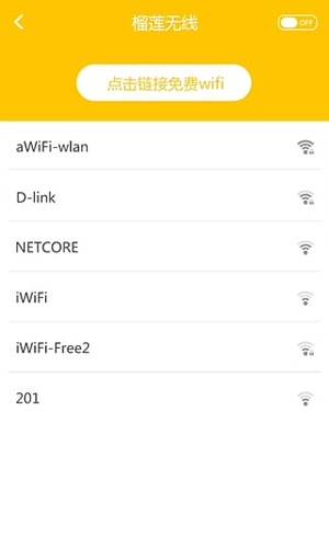 榴莲wifi,一款WiFi免费连接软件,榴莲wifi和其他热点工具不同,榴莲wifi只连接安全网络,包括运营的WiFi,连锁咖啡店,银泰,万达等提供的免费网络,使用榴莲wifi可以连接的WiFi遍布全国哦。