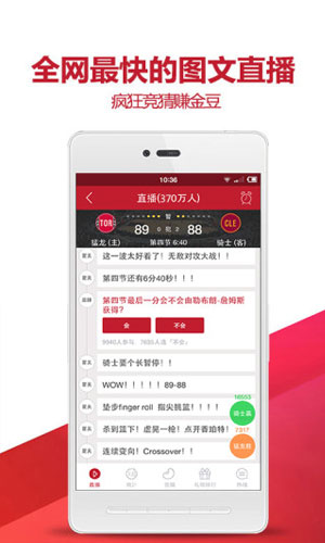 虎扑tv直播平台软件特色: 1.用户可以在虎扑tv直播平台看世界各地的球赛直播节目。 2.虎扑tv直播平台软件非常的强大,海量直播随心看,而且都是免费哦。 3.虎扑tv直播平台软件操作非常的简单上手,轻松为用户打造一款非常实用专业的影音播放软件。