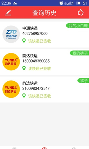 快递查询客户端应用特色: 1.快递查询客户端查询物流十分的详细。 2.快递查询客户端支持拨打各个快递的电话。 3.快递查询客户端支持快速查询快递订单的到达的位置,并记录到历史。