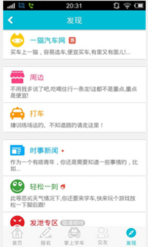 JJ学车APP是由程序猿和知识青年跨界碰撞出的一款学车服务平台,致力于让学车变得更简单、有趣,开创炫酷学车新方式的学车社交客户端,一款为学车而生的强大APP,包括在线报名、学车交友、预约练车、做任务赚驾币及各种优惠活动等,快来下载吧!