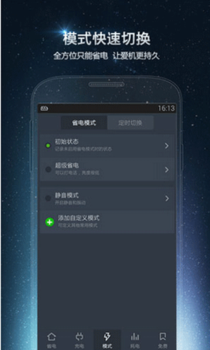 主要功能: 1、权威的耗电评分; 2、酷炫的专业充电; 3、一键省电模式; 4、精准的时间预测; 5、专注省电,效果看的见。