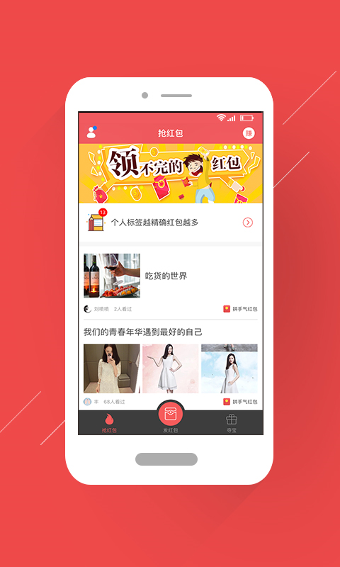聪明红包是一款抢红包软件,这款软件在发红包时标题、描述和图片的限制放宽了,抢红包也再也不用等了平台和商家每天不定时发红包,免费玩1元夺宝游戏,N多新潮礼品免费拿,夺宝结果由系统随机控制,保证公平公正性,聪明红包平台绝不做人工干预。