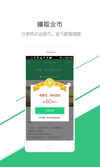 WiFi畅游这是一款免费WiFiApp,虽然不是什么大公司出品,但质量不错。WiFi畅游可以用于连接运营商提供的热点,以及用户共享出去的热点,共享的话可以赚取金币WiFi畅游需要登录帐号才能连接免费WiFi热点,有一个比较好的设计就是无法连接的WiFi会标明需要密码,免得用户做无谓的尝试。
