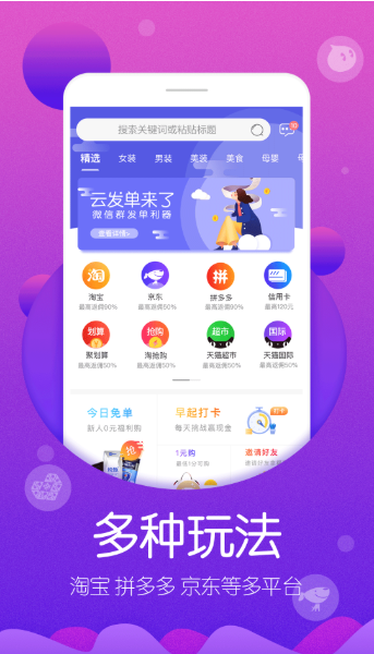 拼多多下载,与快乐家族相约《快乐大本营》,一起体验拼团购物的实惠与快乐;还有《非诚勿扰》,嘉宾购物送礼首.选拼多多下载安装,男女嘉宾一起感受拼的乐趣;更有《我是大侦探》何老师带你一起探索购物的奥秘,当侦探和买东西都要——拼多多!