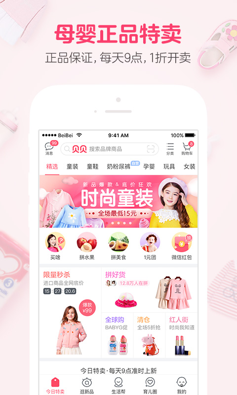 贝贝特卖亲子装每一位用户提供便捷的生活购物服务,在这里您可以按类别搜索自己想要的商品,并且全场商品低至1折包邮哦!我们的愿望是让您能够买到优惠实用的母婴用品。