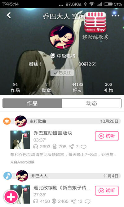 【更新内容】 1.完成每日任务,赚取K币奖励 2.每日签到得K币,连续签到还可得更多哦 3.去幸运大转盘试试手气,中奖率100% 4.去歌房淘宝店充值,做一把土豪 优化空间作品列表评论不易点击的问题 新增有更多途径获取K币 更多细节优化和修复等你体验!