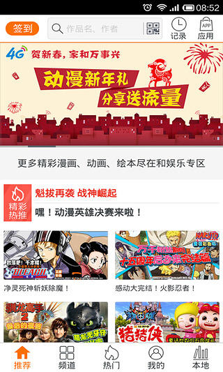 2015新番连载,和动漫带你看不停,《东京喰种第二季》《寄生兽》《名侦探柯南剧场版》《喜羊羊与灰太狼》等等,不管是中国的,还是日本、欧美的,和动漫都能满足你!更有年终免费送红包啦,1.8万个流量红包,包你春节玩得愉快! 和动漫3.6.141230版本更新内容 1.新春精选伴过年,土豪送红包,春节不怕没流量; 2.抽奖及相关按钮优化,加入更多虚拟、实物礼品内容; 3.修复部份机型内存溢出导致闪退问题; 4.修复部份作品内容下载不成功问题; 5.修复部分机型点播出现闪退问题; 6.修复其他已知BUG!