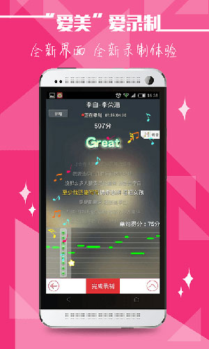 酷我K歌软件功能: 1、过万的伴奏曲库,每日还会不间断的更新。 2、自由切换原伴音,让你迅速学会新歌。 3、职业智能评分,让你迅速提升唱功。 4、软件还有交友社区,让你交到志同道合的人。