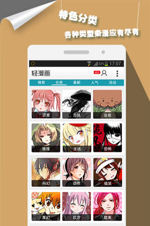 轻漫画功能特色 1、超快的漫画加载速度,极致的漫画观看体验; 2、众多漫画作者加盟,带来丰富的漫画作品; 3、华丽的应用画面,全新的漫画观赏体验; 4、彩页清晰显示,让手机漫画变得更好看。