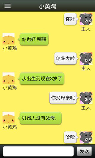 小黄鸡聊天机器人,一款非常有趣的聊天软件。即使一个人感到无聊了,也可通过小黄鸡,发泄心中的苦闷。万能的小黄鸡可是什么都会的,不论唱歌、翻译,还是计算、诗词等,它都能为你讲解一二。 小黄鸡聊天机器人软件特色 -像朋友一样,与你开心聊天 -一个人无聊的时候,它来给你解闷 -万能的小黄鸡,什么都会 -唐诗宋词、百科翻译、计算天气等 小黄鸡聊天机器人5.0版本更新内容 1.【新增】语音聊天功能; 2.【修复】上一版本的bug。