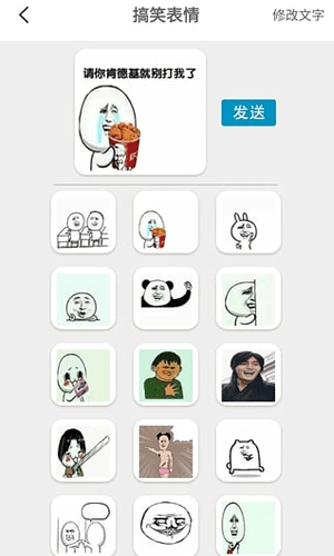 表情制作器手机版特色: 1.支持制作各种好玩的表情,并在微信、QQ中发送各种表情。 2.集合了金馆长,暴漫,明星,搞笑等多位表情帝的最新表情包。 3.支持微信好友和朋友圈分享,并且支持一键导入手机相册功能。