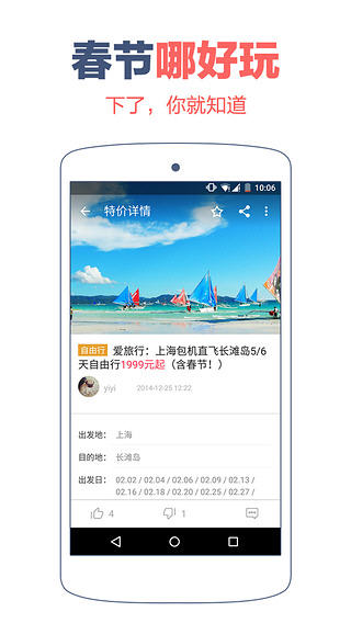 哪好玩,每天为你播报各大网站,特价商品,及实时资讯。并且,还有专业小编为你量身推荐各地特色景点,包你这个假期,玩得Happy! 哪好玩主要功能 1.获取超值旅游、机票、酒店、门票等优惠信息,享受意想不到的折扣; 2.根据你所处位置,方便查找4小时车程内的酒店、套餐等一切好玩情报; 3.及时获取当前最热抢购活动,并一键添加至日历,秒杀快人一步,就是那么任性。 哪好玩1.2.34版本更新内容 1.侧边主菜单增加积分功能,会改用积分计划给用户直接兑换旅游产品; 2.增加“有福利”板块,用户可以更方便点击查找享用我们的福利; 3.资讯内容调整,除了旅游特价产品增加很多咨询信息,信息量是原来3倍,更丰富和充实; 4.版面优化,筛选内容整合得更方便清晰。