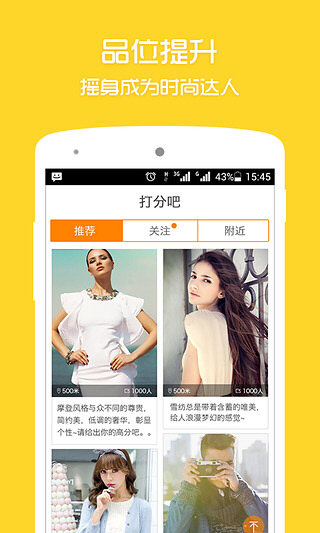打分吧,提升你的时尚品位,分享搭配,专家指导,打分建议,找到MYSTYLE,尝试不一样的未来!有趣的娱乐软件,分享打分,时尚心得,看周边漂亮MM和帅气Oba,娱乐的同时寻求认同、思想碰撞!个性化社交,寻求趣味相投的朋友,体验分享的乐趣,转角遇见那个独特品位的TA,相同品位,不同风格,创意的灵感!重新发现自己,欣赏和美化自我,穿衣时尚度up,悦己、悦心享受,在遇到TA之前成为更好的自己! 打分吧1.1.0版本更新内容 1.UI全新改版,新界面,更清爽; 2.首页推出改造对比内容,野猪大改造,一秒钟变高富帅白富美; 3.个人主页,相册功能,打分列表功能重新设计; 4.照片打分机制重新修改; 5.其他功能细节修改; 6.其他bug修复,优化。