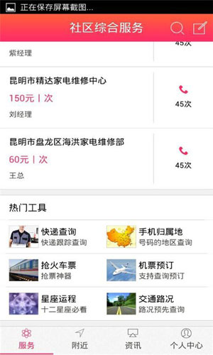 社区是app抢占的一个重要市场,“社区综合服务”专注于为用户提供便捷的社区生活服务,提供包括家政、外卖点餐、快递、订车票、交通信息查询等诸多项目。