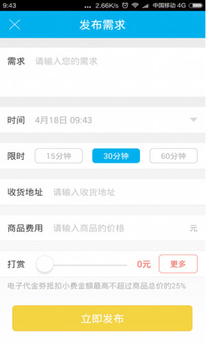 需要么app软件特色: 1.需要么app是一款非常实用专业的提供便捷社区购物的应用,。 2.需要么app让你足不出户尽享购物的便捷,还有超多的优惠折扣哦。 3.需要么app附近商家,送啥都快,软件支持商家申请驻店、上传商家资料、用户需求订单的接收、拨打用户电话、转账至绑定银行卡、督促用户付款等功能。