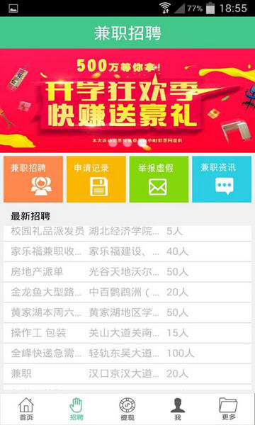 快赚应用亮点 1、众多兼职招聘信息; 2、游戏赚钱等海量的赚钱任务; 3、学分兑换,获取精美奖品; 4、快速提现,赚钱安全可靠; 5、丰厚的学分活动,各色大礼送不停。