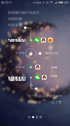 24PI,一款实时使用手机数据分析统计的软件。创新的时间轴功能,用简单直接的方式告诉你,你在每个软件上所花费的时间。用一组准确无误的数据警醒你,时间其实已经悄悄流走了。 24PIapp软件特色 -精确的数据分析统计,告诉你的每时每分时间何在 -圆饼图百分比分类显示,清晰直接,简洁美观 -时间轴无缝式契合碎片,为你清楚展示每个软件使用时长 24PIapp2.0.4版本更新内容 1.【新增】耗时阶段性提醒; 2.【新增】多种方式提醒,弹窗或状态栏; 3.【优化】非WiFi模式下,背景图不显示; 4.【优化】时间显示异常的问题; 5.【修复】上一版本的bug。