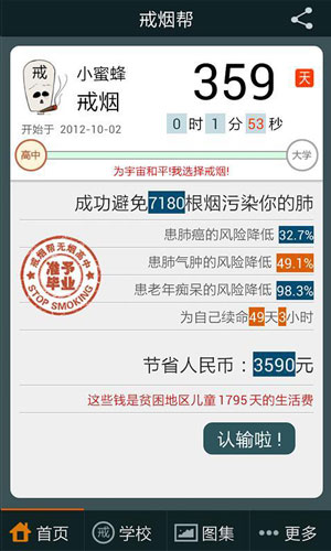 戒烟帮2.0版本更新内容: 1、【优化】戒烟闹钟功能。 2、【优化】微博分享。 3、【调整】用户注册功能。 4、【完善】系统和用户体验。
