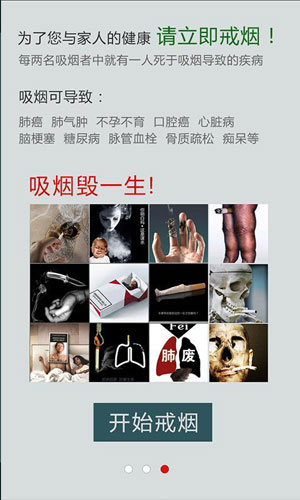 当下社会,各种疾病层出不穷,肺癌更是数不胜数,戒烟已经成为一种必然的趋势,戒烟帮软件应时而生,帮助千万烟民摆脱烟瘾,还你一个健康的肺。