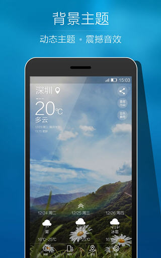 Ami天气魅族专享版是一款专为魅族手机打造的桌面壁纸软件,用户无需解锁,便可在锁屏界面查看天气、PM2.5指数、时钟等。逼真的天气动画背景图显示,时刻感受如身临其境般的体验。 Ami天气魅族专享版2.0.4.d版本更新内容 1.【新增】动态主题背景随时换; 2.【新增】海外各主流城市天气情况; 3.【新增】英文字体显示功能; 4.【新增】音效与天气完美匹配; 5.【优化】天气数据显示异常的问题; 6.【修复】用户反馈的bug。